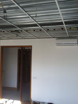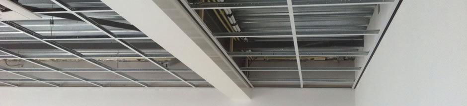 Een systeemplafond onttrekt relatief eenvoudig het lelijke betonnen plafond aan het zicht.